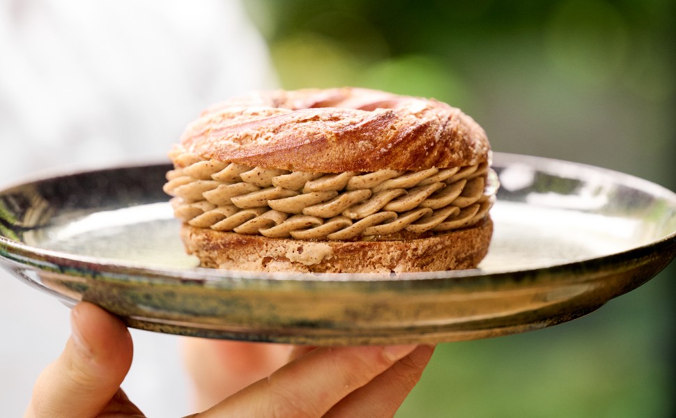 Nestling at the heart of the Domaine’s leafy park, the Brasserie recalls a vast contemporary loft opening out to a magnificent terrace. Inside, the dining-room is laid out around an open kitchen, presenting codes of the industrial style in a chic, cutting-edge interpretation by Pierre-Yves Rochon. Red brick walls, suspended metal lighting, bench seats and chairs in suede in shades of terra-cotta and pistachio compose a warm décor, highlighted by beautifully laid tables of light wood. To orchestrate this unique setting, Lucas Kleinclauss and his team ensure that each visit is a moment of pure enjoyment. In the kitchen, Chef Christophe Moret sets his signature to a generous, spontaneous menu, in tune with the seasons and designed to reinstate conviviality at the core of the experience with the collaboration of Chef Aurélien André and his twenty-five years of expertise. Superb proposals for sharing such as braised Ibaïama pork belly, along with inspired gourmet dishes: cappuccino of lentils from Champagne with liquorice and chicory, scallops from Normandy and a curry-flavoured cauliflower arrangement, or duck tagliata with blackberry sauce and anchovies. Desserts conjured up by Chef Rosalie Boucher prolong this moment of gourmandise in all elegance, from a must-have pink pralines “île flottante” to candied chestnuts in a play on textures, tweaked with lemon. Whether in desserts at the Brasserie or Le Parc**, the guarantee of quality resides in the freshest products, and the kitchen brigade of 18 pastry-makers who work together to provide all the sweet treats served in the Domaine: from breakfast to Le Parc**, the Brasserie, and room service in the suites. In fine weather, Brasserie Le Jardin reveals its N°1 asset: a terrace with no equivalent in the capital of Champagne, a real haven of serenity and greenery, offering an unsuspected getaway at the very heart of town.