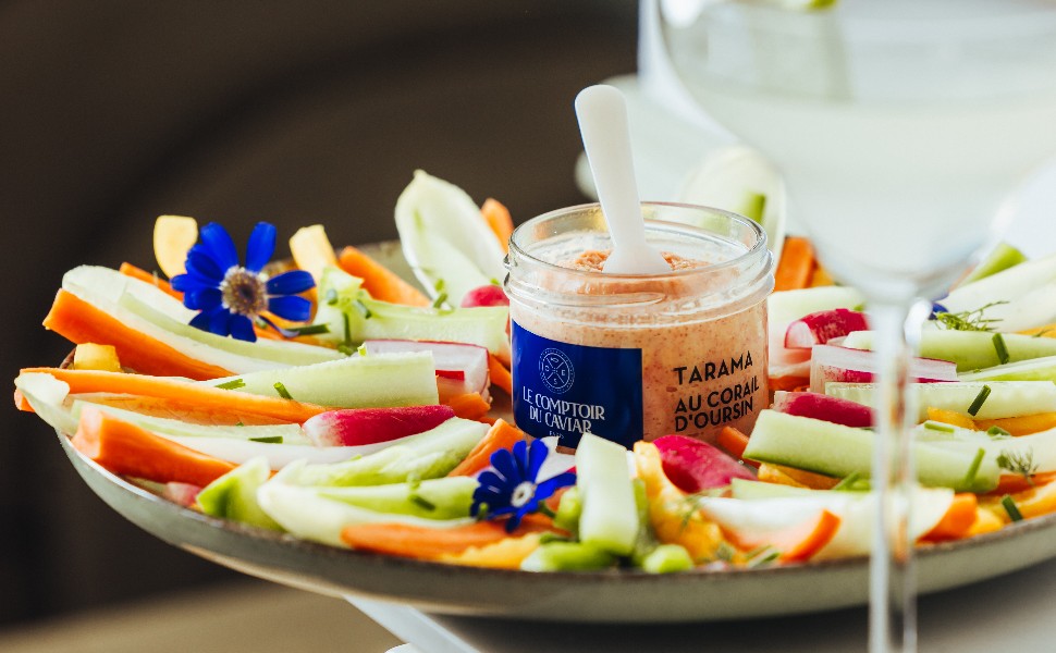 Typical of Greek and Levantine cuisine, tarama is a preparation blending smoked cod roe with a delicate emulsion made of oil, bread and lemon. Appreciated for its light, creamy texture, it is also an excellent source of proteins, naturally rich in Omega-3. In its workshop in Mulcent, Le Comptoir du Caviar creates its own tarama with meticulously selected ingredients. Recipes range from the most delicate to the spiciest - sea urchin coral, summer truffle, Espelette pimento, Wasabi Tobiko -, all prepared with no artificial ingredients. On a warm blini as an aperitif, or as a fresh touch to accompany a more generous dish, tarama adds just what it takes to make shared moments truly sublime. A delicacy from the sea, refined and affordable, to be relished in all simplicity.