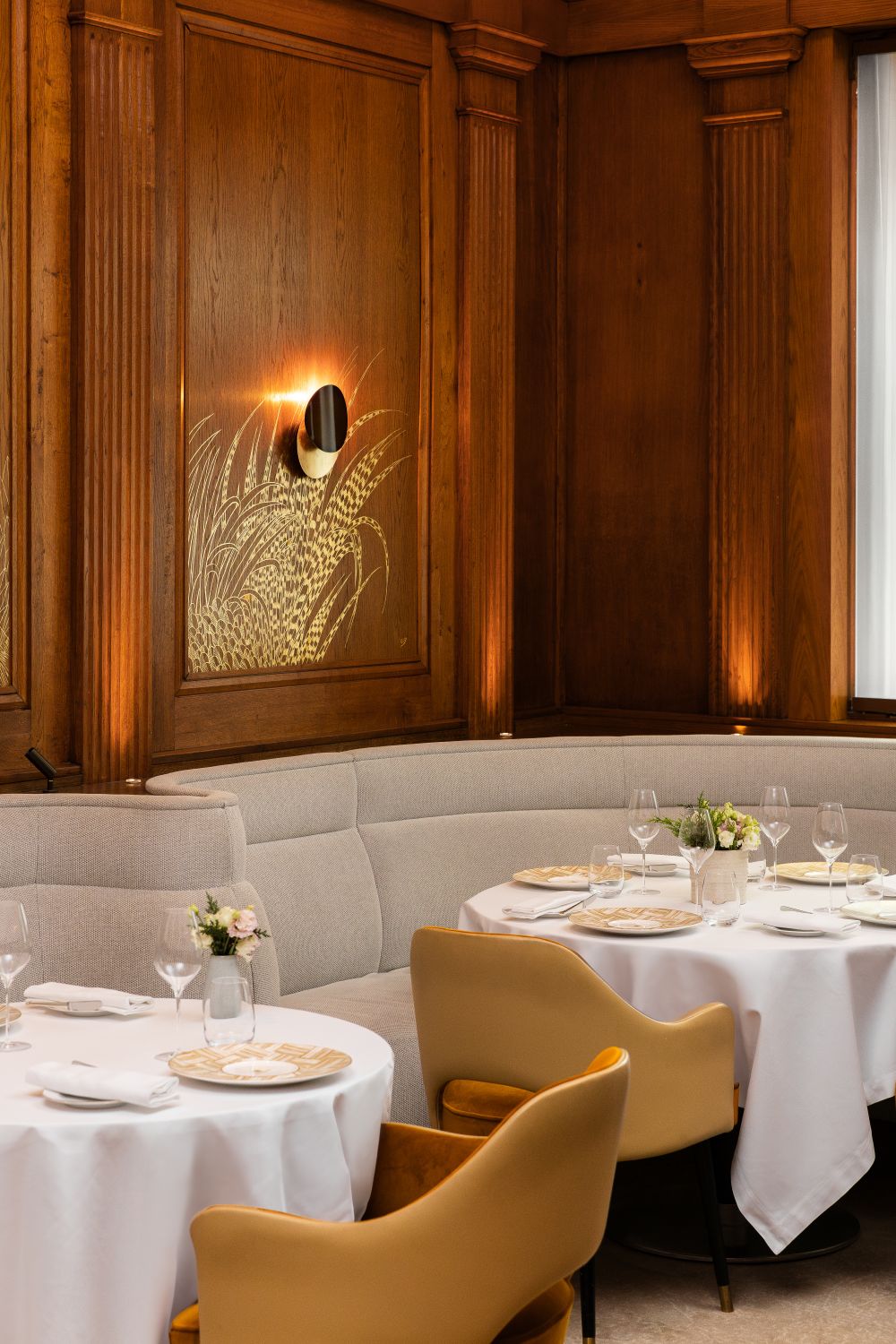 Le Taillevent’s soul is also closely tied to its aesthetic identity. The building has retained much of its original stylishness: a freestone staircase of honour, pediments, pilasters, columns, private salons listed as historic monuments. In 2021, the Gardinier brothers entrusted renovation of the property to interior architect Yann Montfort. The aim was to reveal its heritage without tampering with it. His work fine-tunes lines, softens materials, offering a modern reading of spaces, lighter and more comfortable, without impairing their splendour.